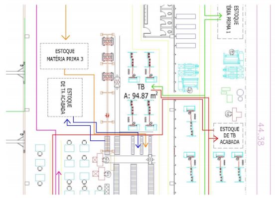 O setor de TB, que antes tinha algumas máquinas dentro do mesmo espaço físico que o setor de montagem, mas longe da maioria das máquinas e a chegada do estoque de matéria prima que fica fora deste espaço, geravam uma grande movimentação. A proposta do novo layout apresentou o setor de TB dentro do mesmo espaço físico com todas as máquinas agrupadas e maior espaço entre elas. A chegada da matéria prima deste setor agora é feita pelo lado onde o setor foi instalado.