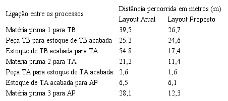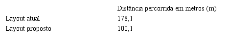 Na tabela 3, é apresentado as distâncias percorridas durante as atividades no novo layout e no layout proposto.