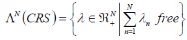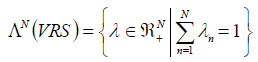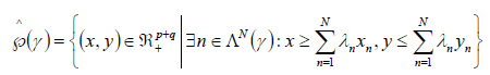 subset that contains the pair (Xn, Yn), y and satisfies: the free inputs and outputs discard; the convexity production possibilities set as well as its scale returns, that can be considered constants (CRS) or variables (VRS) (Bogetoft & Otto, 2010):