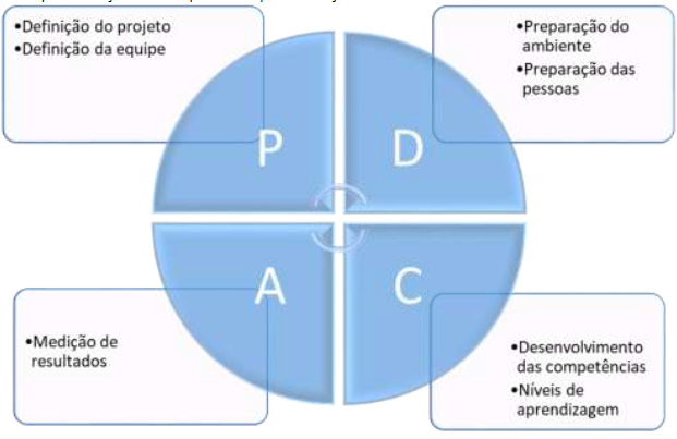 Não há um tempo predeterminado para que cada fase seja desenvolvida. A maturidade da equipe é o fator que define o avanço em cada uma das etapas.