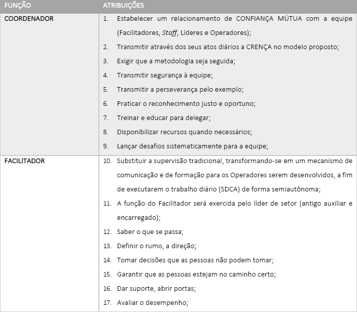 A Figura 5 demonstra que após a definição dos membros da equipe, o coordenador deixa de ser o executor para dar apoio à equipe no desenvolvimento das Células Semiautônomas. Estas, por sua vez, começam a assumir mais responsabilidades (coordenador, facilitador, staff técnico, líder e operador.) e passam a ter maior autoridade na busca dos resultados estabelecidos como metas padrão, sendo esta chamada de Fase 2.