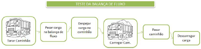 Após a realização do mapeamento, constatou-se que a calibração da balança seria uma ação de ganho rápido, conforme pode ser observado em destaque na Figura 5. Para tanto, foi realizado um teste para analisar a calibração da balança de fluxo. O teste foi realizado de acordo com a Figura 7.