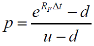 A probabilidade neutra ao risco dos movimentos ascendentes, p, e descendentes, q = 1 - p, foram calculadas conforme preconizado por Copeland e Antikarov (2001), e expressas por: