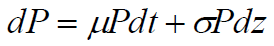 dz é o incremento de um processo de Wiener (incremento do caminho aleatório da variável selecionada, com distribuição normal e tempo definido).