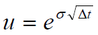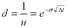 ∆t é a variação do tempo, que corresponde ao tamanho do passo entre os nós da árvore binomial; e é o número de Neper, dado por 2,71828...;