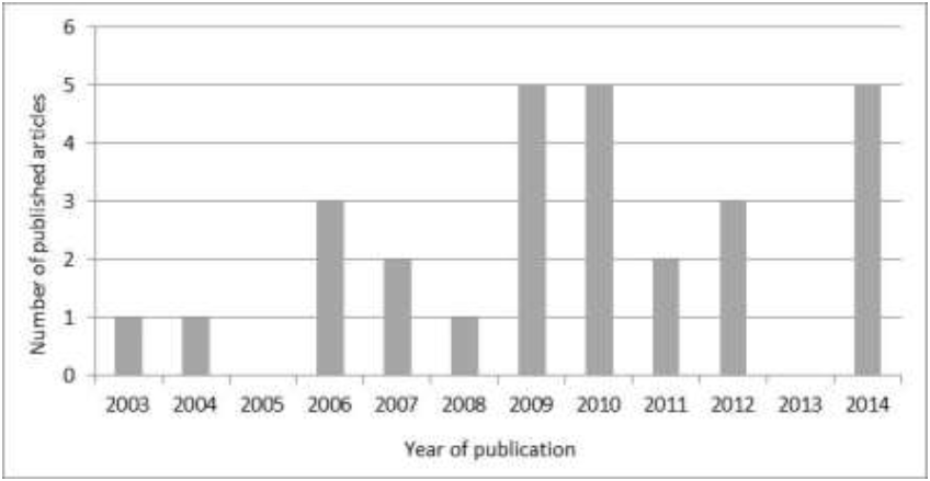 After the stage of selection of articles that included methods and models to carry out forecast of WEEE´s generation, the data were organized and analyzed. Figure 4 shows that the subject is still incipient and the number of papers is very diverse over the years.