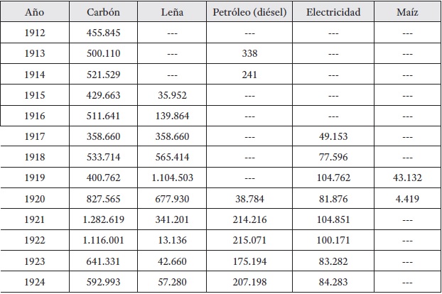 Uno de los elementos que la empresa señalaba como causa fundamental del deterioro de su situación financiera era el incremento del precio del combustible usado para la tracción (ver el cuadro 1), asociado a las dificultades referidas a la importación del carbón desde Gran Bretaña. En esta etapa, la compañía procedió a buscar sustitutos y se comenzó a utilizar leña. En los dos años posteriores al final de la guerra se llegó a alimentar las calderas de las locomotoras con maíz34.