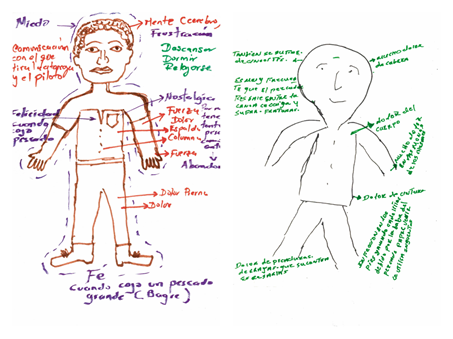 Para consolidar una Historia pública de la navegación por el río Magdalena es importante no sólo entender el desarrollo de las tecnologías de navegación, sino las implicaciones y articulaciones sociales, políticas y económicas desde los puntos de vista de diversos agentes. En este caso, como se expuso en esta sección, las historias de la navegación se entretejen con procesos de formación de clases medias emergentes, aspiraciones políticas y tecnológicas contrapuestas, disputas sobre la vocación del río, entre otros. Una última relación por presentar que hace parte de la contribución más amplia que sigue en proceso en esta investigación es la importancia del oficio de la pesca para los pobladores ribereños. A lo largo de la cuenca se han desarrollado e implantado diversas técnicas de pesca y diferentes espacios para realizar dicha labor, desde “rancherías” (esos lugares de encuentro en momentos de pesca, en particular en épocas de subienda de peces) hasta camas de pesca (pequeñas estructuras en piedra y cemento). El oficio también se lleva y se hace con el cuerpo: con las memorias de las emociones como el miedo, la felicidad, la frustración y la nostalgia, “por no tener tanta pesca como antes” y por los dolores, enfermedades y cicatrices en el cuerpo (ver la imagen 5).