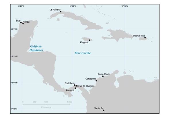 La península de Yucatán (en México) comparte con la costa caribeña varios aspectos culturales e históricos que con el tiempo se han ido difuminando. Por el mar común circularon varios barcos, y entre ellos, un ir y venir de gente. Una de estas personas fue Benito Pérez Valdelomar, quien, gracias a su carrera dentro de la monarquía hispánica, transitó por Puerto Rico, La Habana, Yucatán y Panamá. Su figura -que representa cientos de casos más- resulta un excelente ejemplo de la carrera que seguían los funcionarios de la Corona española en América. En Yucatán ejerció como Intendente y Capitán general, pero a finales de 1810 fue nombrado virrey de Nueva Granada; el nombramiento formal data del primero de abril de 18113. Durante varios meses se dedicó a cerrar los asuntos propios de Yucatán, así como a emitir medidas en su nuevo puesto y entender la situación en el destino que lo aguardaba. Ahora bien, este artículo sólo se centrará en un período clave, de 1811 a 1813, un contexto ideal no sólo por la coyuntura política global sino porque permite observar dos realidades aparentemente similares, pero con contextos diferentes: Yucatán y Nueva Granada.