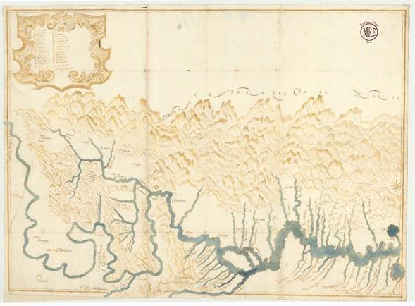 Esta visión de la Amazonía occidental fue representada en un mapa manuscrito adjunto al memorial franciscano (ver la imagen 1). Aunque la autoría del mapa es desconocida(14), quien lo ejecutó tuvo el cuidado de enfatizar toda la cuenca del alto Ucayali-Apurímac, el cual comunicaba el mencionado Cerro de la Sal con la misión de Conibos, en el norte. Así, se proyectaba la importancia de este río como eje principal de comunicación al este de Lima y, sobre todo, bajo dominio seráfico. Esto, a su vez, fue acompañado de una redefinición del mismo río Amazonas.