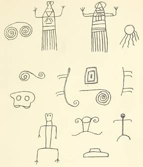 Wallace also made a comprehensive list of words in several different Indian languages. On more than one occasion, he wrote in his book about having asked members of different indigenous groups, who also spoke the Língua Geral learned by him, to gift him with a vocabulary of their native languages.(42) These vocabularies collected by Wallace were later studied by philologist and ethnologist Robert Gordon Latham (1812-1888), who wrote a few remarks about them in an appendix to the first edition of Wallace’s travel book.(43) The subject seemed to interest him very much and part of his studies were devoted to what he called “picture-writing,”(44) which he had seen engraved on rocks along the Amazonian district. The carvings, also called “rock-pictures” by Spruce, are also discussed and illustrated on his book. Figure 1