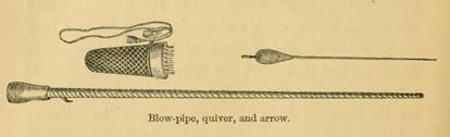 Other than their practise and empirical knowledge of the habits of animals, travellers also often attributed the Indians’ success in capturing animals to their hunting techniques. According to Edwards, some of the Indians even took advantage of travellers’ interest in rare birds, such as the cock-of-the-rock, that they habitually shot and skinned the birds to sell for a small profit. Edwards also remarked on their preferred weapon to shoot these birds, the blowpipe, saying that “an Indian will by the mere force of his breath shoot with the precision of a rifle, hitting an object at a distance of several rods.”(57) Wallace described the Indian’s gravatana as “a tube of ten to fifteen feet in length, through which they blow small arrows with such force and precision, that they will kill birds or other game as far off, and with as much certainty, as with a gun.”(58) Still according to him, the blowpipe was the principal weapon in the Amazon and “every Indian has one, and seldom goes into the forest, or on the rivers, without it.”(59) From Bates’ book we gather that he and Wallace had lessons in the use of the weapon from a Jurí Indian named Julio who was being employed at the time by the English bird-collector J. Hauxwell.(60) Learning the ways of the Indian hunters was an essential step for a successful collection of specimens, as relying solely on the natives could result in inconveniences, as noticed by Spruce, who said: