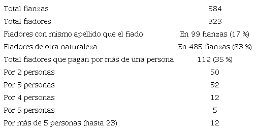 El proceso de elección de fiadores ilumina otros aspectos de esta lógica, vinculados con la ampliación de los sujetos del castigo y las dinámicas relacionales asociadas a la solicitud de clemencia. Aunque se suponía que los presos tenían libertad para nombrar a sus terceros responsables, no era extraño que las autoridades exigiesen que estos fuesen liberales. Así les ocurrió, por ejemplo, al antioqueño Sinforiano Arcila y al caucano Euclides Caicedo, cuyos compromisos de fianza incluyeron esta condición como requisito indispensable para sus excarcelaciones30. Dicha exigencia permitía al Gobierno extender las responsabilidades asociadas a la caución a otros liberales además del fiado, lo que suponía una ampliación del radio general de la lógica punitiva propia de estas fianzas. La tabla 2 muestra cómo la gestión de las 548 cauciones presentadas en la Alcaldía de Medellín permitió involucrar, en esta dinámica de castigo y perdón, a por lo menos 323 personas en calidad de terceros.