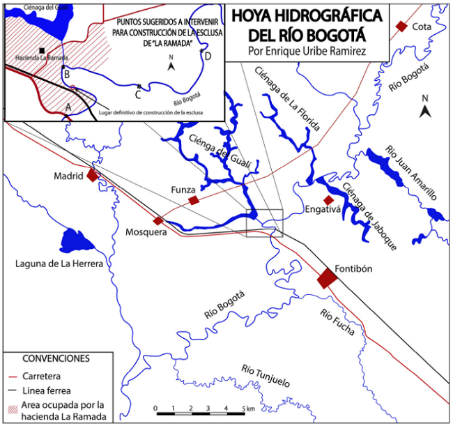 Keywords: Bogotá River, environmental history, hydraulic engineering, irrigation, La Ramada district.