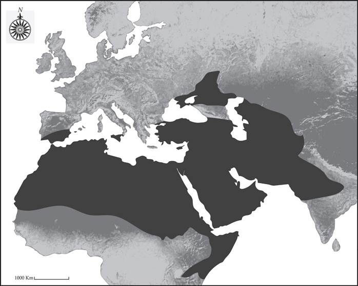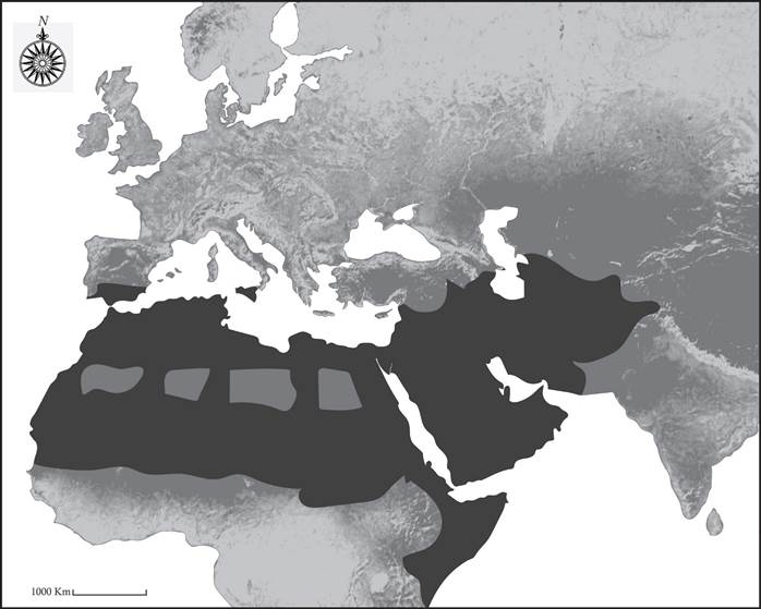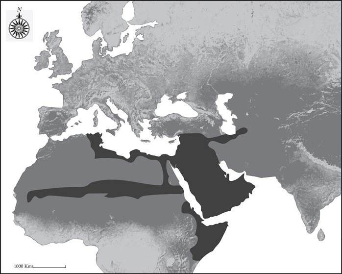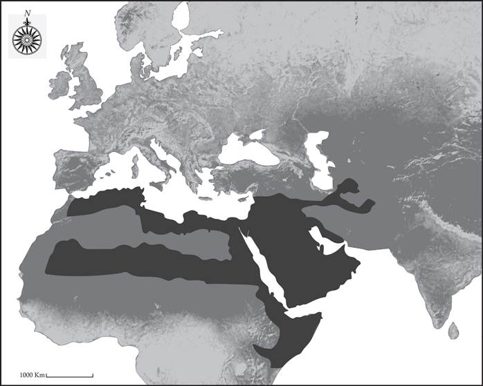 North Africa has a separate history in which, I believe, Roman Tunisia and Tripolitania developed camel pastoralism when the Roman economy fell apart in the third century, and local farm laborers took the camels they used for plowing and cart pulling-highly unusual activities for camels at that time-and seized territory for themselves in the northern Sahara. When the Arab armies reached that far west in the early eighth century, they encountered these locally developed nomadic populations and eventually Arabized them. From an economic point of view, however, this was a union of two different camel-breeding zones, “Middle East” and North Africa. A third zone was found later in the southern Sahara, which adapted easily to the northern caravan economy. Egypt was less amenable to changing from sea and river transport to caravans and, unlike Sudan, did not become a major camel-breeding region. Pastoralists herding two-humped camels provided yet another component of camel caravan trading from Central Asia to northwest China.
