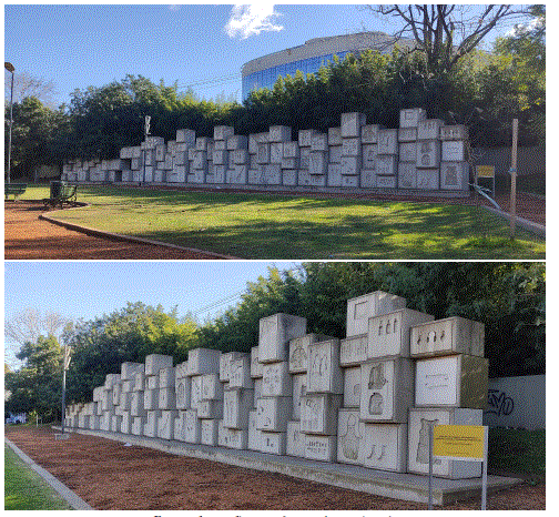 No obstante, aun contra la voluntad de sus autores, el monumento comprende una serie de dimensiones situadas y testimoniales, desde su fase proyectual hasta la materialización como memorial, que ponían en tensión su abstracción poética. En primer lugar, y desde su concepción como proyecto, los 114 bloques de cemento simbolizaban a las víctimas de los atentados contra la Embajada de Israel en Argentina en 1992, cuyo saldo fue de 29 muertos, y el de la Asociación Mutual Israelita de Argentina en 1994, que dejó 85 fallecidos. Si bien, según los registros, las referencias a estas otras víctimas estaban desde el origen, posteriormente hubo una revalidación de su simbolismo. Una crónica del diario Clarín, por ejemplo, daba cuenta de aquel número como muestra “de nuestro pasado vergonzante”, y hacía referencia a la frustración de las investigaciones judiciales en torno a aquellos atentados y, en particular, al clima suscitado en el país tras el acuerdo de entendimiento con Irán (2013) y el fallecimiento del fiscal a cargo de la causa amia (2015). Como se advirtió, este artículo señalaba que, aun cuando el monumento estaba finalizado, su carácter era el de no nato: “El muro se terminó en mal momento, en febrero, poco después de la muerte del fiscal Alberto Nisman. Ahora tendrá que esperar una mejor oportunidad para convertirse en memorial de la Shoá”68.