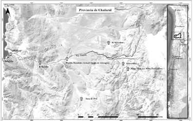 Las condiciones de aislamiento marcaron la historia de la mina de Potrerillos. El yacimiento está ubicado a 3.250 metros sobre el nivel del mar, en la cordillera andina de la actual región de Atacama y a solo 120 kilómetros de la costa del Pacífico. El mineral que se encontraba allí es de tipo cuprífero porfídico, con una distribución geológica en forma de medialuna, y estaba a cerca de 450 metros de profundidad12. Andes Copper, subsidiaria de Anaconda Copper Company, adquirió los derechos de explotación del yacimiento en 1916 y, luego de un complejo proceso de construcción, la mina comenzó a producir en 1927. Para garantizar la producción, la empresa norteamericana estableció un complejo minero industrial portuario unido por un moderno ferrocarril que pudo superar todas las dificultades que impuso la geografía andina. Asimismo, la explotación, la producción y el transporte de cobre descansaban sobre un complejo habitacional y laboral que contó con una red de campamentos que tenía como centro neurálgico Potrerillos, donde se encontraban la fundición y las oficinas centrales. Sin embargo, a pesar del férreo control de la empresa, sus bordes siempre fueron porosos y los campamentos formaban parte de la geografía social de Atacama y sus caminos que atravesaban quebradas y cuestas13.
