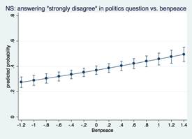 The first emerging pattern is that Benpeace is associated with individual preferences in six out of the seven dependent variables analysed for both samples. In all these cases but one (the politics question for CAMS), p-values indicate with 99% confidence that this association exists. Interestingly, the only question in which this variable is not statistically significant is the one referring to punishment. As this is arguably one of the most emotionally charged and morally sensitive issues in peace processes (Rettberg 2012), these results could indicate that principled beliefs unrelated to ideology, rather than ideas on the long-term material benefits of the policy, are the main determinants of support for allowing a certain degree of impunity.