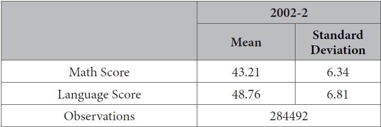 Our analysis focuses on two outcome variables: the score on the mathematics exam and the score on the language exam. Table 1 presents the statistics of the scores obtained by students on the mathematics and language secondary school exit examinations. The scoring scale for this exam ranges from 0 to 100.