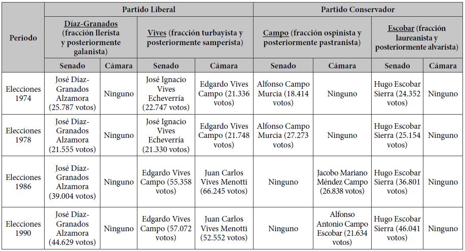 Segundo, a pesar del debilitamiento de la industria bananera y del auge del narcotráfico, la oligarquía conservó sus cuotas de poder político a nivel nacional durante las décadas de los setenta y ochenta. La mayoría de curules al Senado y la Cámara fueron ocupadas por integrantes de las familias Díaz-Granados, Vives, Campo y Escobar (ver el anexo 1). Por añadidura, los oligarcas samarios siguieron controlando la intermediación de los recursos que proveía el Estado central al departamento, sin importar su afiliación partidista pues militaban en los partidos dominantes en ese momento (Liberal y Conservador).26 Como en muchas otras regiones de Colombia, la atención de las demandas básicas de la población con los recursos públicos, a través del clientelismo, contribuyó a evitar sublevaciones sociales. El entonces senador José Ignacio Vives, por ejemplo, utilizó auxilios parlamentarios para la construcción de un barrio que adoptó su nombre. Igualmente, el congresista Edgardo Vives Campo gestionó recursos para un megacolegio destinado a los más pobres, y José Ignacio Díaz-Granados Alzamora, exministro de Salud, destinó un presupuesto para la compra de lotes y la edificación del Hospital Central.