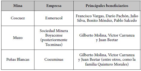 A raíz del desorden y la violencia en la zona, el gobierno del presidente conservador Misael Pastrana Borrero (1970-1974) optó en 1973 por entregar en concesión las minas de Muzo, Coscuez y Peñas Blancas. Pero la licitación se declaró desierta. Se ordenó incluso cerrar las minas (“Confusa licitación de minas de esmeraldas” 1974). Isauro Murcia apeló a varios congresistas del Partido Conservador y logró que se citara a un debate de control político al ministro de Minas, Gerardo Silva, quien negó la concesión de las minas a la Empresa Colombiana de Esmeraldas (Esmeracol) (“Investigarán licitación de minas de esmeraldas” 1974), propiedad de Murcia y Francisco Vargas (“Con 800 socios, se inicia firma” 1973). El pleito político y jurídico para definir los derechos de explotación se prolongó tres años más. Mientras tanto, los oligarcas de Muzo continuaron las extracciones clandestinas y contactaron a un reconocido abogado, Juan Beetar, para que a través de sus conexiones con la clase política bogotana45 propiciara la firma de contratos de operación en las minas.46 El lobby de Beetar dio frutos, y en 1976 el Gobierno Nacional adjudicó contratos de operación en las minas de Coscuez a la empresa Esmeracol y se entregaron a la Sociedad Minera Boyacense y Coexminas las demás concesiones para la explotación de esmeraldas en Peñas Blancas y Muzo (“La empresa privada explotará minas” 1976).