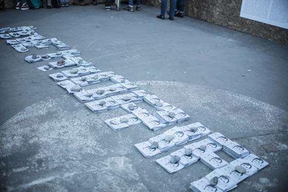 Bajo la consigna “La memoria es nuestra”, entre septiembre y octubre de 2015, DP realizó una instalación artística en un centro cultural de Santiago. Esta consistía en un árbol colgado, “que representaba el cuerpo torturado, mutilado y rearmado flotando sobre la tierra y, bajo él, 50 mil manuales dispuestos formando la palabra memoria” (ver la imagen 1). Esos manuales (ver la imagen 2) contenían instrucciones sobre cómo desclasificar los archivos de la comisión. Si los manuales fueron elaborados para los declarantes (calificados y no calificados) y sus familiares, quienes pueden solicitar la desclasificación de la documentación, la instalación buscó involucrar a la sociedad en su conjunto bajo la consigna de la apropiación del proceso como un asunto de bien común. La labor pedagógica de DP a través del Manual se combina con la facilitación de un espacio público -la plataforma web- para que la comunidad conozca los hechos de violencia y pueda acceder y producir nueva información a partir del análisis de la documentación publicada, estableciendo correlaciones y cruces de información. Con esta propuesta, DP incluye a la sociedad civil en la controversia protagonizada por el Estado y las víctimas. Este tercer actor es invitado a apropiarse de la documentación que atestigua pasadas violaciones e intervenir en acciones actuales por la memoria. DP amplía así el uso de la documentación de las comisiones de verdad a episodios actuales y otras arenas de la batalla de la memoria.