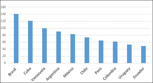 Los cambios llegarían a impactar de cierta manera en el proceso de toma de decisiones, pues los movimientos constitucionales promueven que el poder sea más colegiado. Entonces, en algún momento impactarían el sistema burocrático del Minrex. Por ejemplo, la red de embajadas, consulados y oficinas diplomáticas es densa y profunda, si tomamos en cuenta las condiciones de la isla, como nación subdesarrollada y de sólo once millones de habitantes. Si comparamos con potencias de la región latinoamericana (ver el gráfico 1), detectamos que Cuba sólo está detrás de Brasil. Además, adelanta a Argentina, México, Perú y Colombia, naciones con economías y poblaciones que triplican, o más, a la de Cuba.