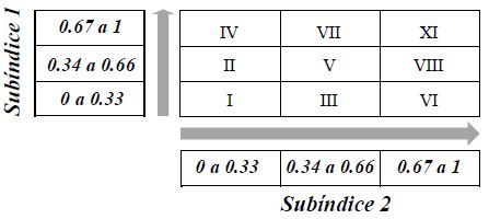 Entonces, en el momento de cruzar dos subíndices, generamos 9 combinaciones, como se ve en la figura 1. Las flechas en los ejes X y Y indican la magnitud de cada subíndice. Derivado de este cruce proponemos la existencia de seis tipos de gobernadores, los cuales son: