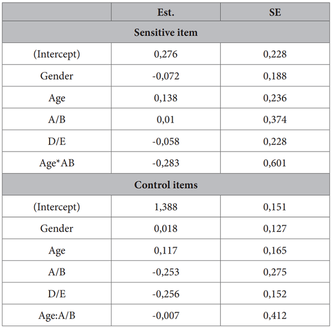 Second, although not statistically significant, we observe an interesting substantive pattern with age: younger respondents, in contrast to older ones, appear to report less bribe-giving in the direct question, while in the LE regression (sensitive item) they are more likely to report having participated in bribery. This could indicate that youngsters bribed more than older respondents but lied about it, underreporting their behavior. Even though we did not specify expectations for this covariate, this finding provides more evidence for observational studies that identify that younger age cohorts in Latin America are more tolerant towards bribery (Blake 2009; Corbacho et al. 2016).