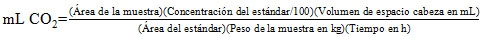 Se obtuvo la producción de dióxido de carbono como tasa respiratoria (CO2 mL/kg.h) mediante el sistema cerrado descrito por Watada y Massie (1981). El fruto se incubó durante 60 min en un recipiente plástico de 12.17 L. Posteriormente, se obtuvo 1 mL de gas del espacio de cabeza y se inyectó en un cromatógrafo de gases Varian (Star 3400, USA) con detector de conductividad térmica (TCD). La separación se realizó en una columna metálica empacada con Hayesep N 80/100 (Supelco, USA). La medición se realizó por triplicado.