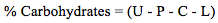 (Eq 1)Where: P = protein, L = Lipids, C = Ashes, U = Moisture.