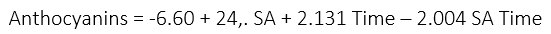 Anthocyanins: The anthocyanin content was significantly influenced (p<0.05) only by the interaction of SA factors and storage time. The regression equation (12) is presented below.