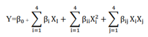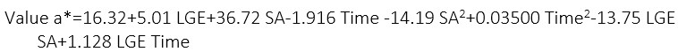 In the a* parameter, the regression analysis as the response variable allowed a second-degree polynomial model to be adjusted according to equation 4: