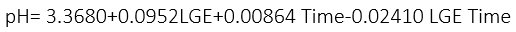 The pH values reduced significantly, with a significant effect of the LGE interaction and storage time, according to equation 7: