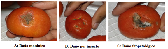 Los otros daños estuvieron relacionados por factores fitopatológicos destacándose la pudrición negra del tomate causada por hongos como: Fusarium clhamidosporum, Alternaria alternata f. sp lycopersici, entre otros (Foto 1). Escalona et al. (2019) plantean que ésta es una de las principales enfermedades en este fruto tanto en campo como durante la postcosecha.