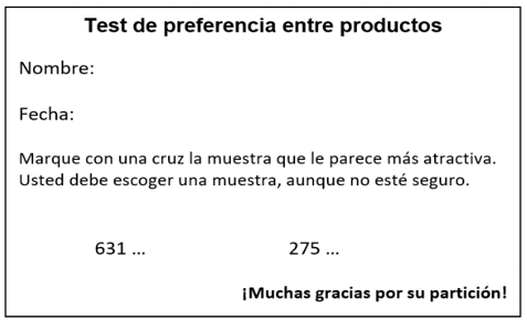 Para este test de preferencia, las muestras se codificaron con números aleatorios. Las dos muestras se presentaron simultáneamente y cada panelista evaluó las dos muestras solamente una vez. Es así que 35 panelistas recibieron en las bandejas primero la muestra A y los otros 35 recibieron primero la muestra B, de acuerdo a Watt et al. (1992).