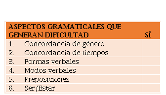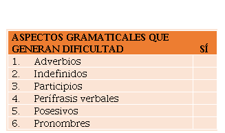 En caso afirmativo, señala con los aspectos gramaticales en los que crees que produces errores: