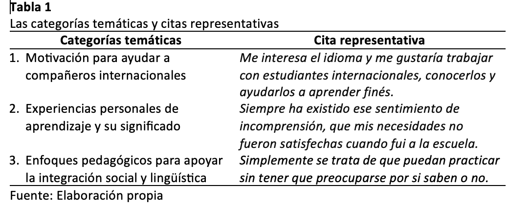 Cada categoría se ilustra con citas representativas que reflejan las percepciones, experiencias y enfoques de las participantes en relación con la integración de estudiantes internacionales.