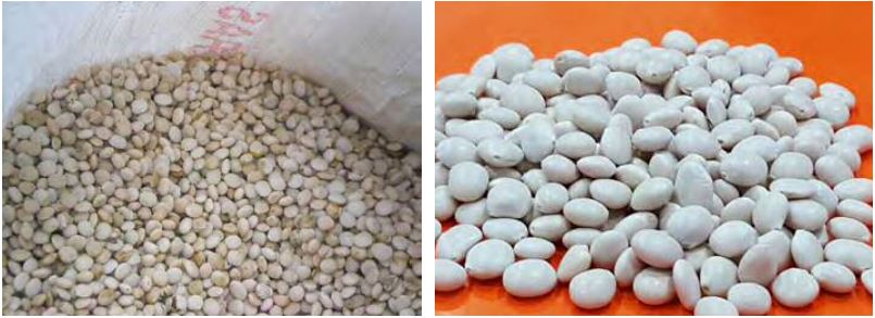 Iniap 450 Andino había logrado traducir los valores promovidos por la red de científicos, instituciones y Estado en nuevas propiedades vinculados a la racionalidad social: a) es una variedad precoz (de seis a ocho meses hasta llegar a producir, en vez de once meses); b) la semilla resulta atractiva en el mercado urbano por su color blanco marfil, tamaño grande y forma redondeada (contrasta fuertemente con las landraces ecuatorianas); c) se difunde como un monocultivo, es una variedad pequeña que permite mayor densidad en los cultivos, se optimizan las labores agrícolas gracias a la tecnología mecánica como trilladoras y química como paquetes tecnológicos para fertilización, control de plagas y enfermedades. En la Figura 1 se muestran las diferencias en color, forma y tamaño entre una semilla de lupino paisano y la de Iniap 450 Andino.