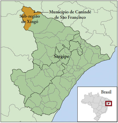O sítio arqueológico Justino está localizado no município de Canindé de São Francisco, numa sub-região conhecida como Xingó, no semiárido do estado de Sergipe (figura 1). A área onde foram realizadas as escavações possui um regime pluviométrico extremamente baixo durante o decorrer do ano (Reis 1976). Já a vegetação é caracterizada por espécies arbustivas, espaçadas, caducifólias, hiperxerófilas plenamente adaptadas ao clima quente e seco (Dominguez e Britcha 1997).
