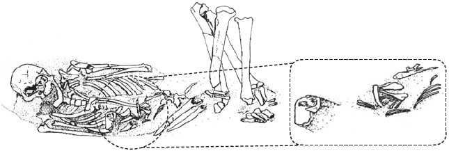 No caso das sepulturas humanas 119 e 166, em que os esqueletos animais se encontravam em perfeita conexão anatômica, além da ausência de marcas de violência nos ossos, as quais poderiam igualmente indicar uma das formas violentas de sacrifício, há um tratamento diferenciado, bem distinto daqueles comumente observados no processamento dos animais para finalidades culinárias e econômicas, assim como no tratamento e na produção de subprodutos, artefatos e utensílios.