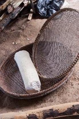 El proceso de cocción y de traslación de lo crudo a lo cocido es realizado al exprimir el veneno de la yuca amarga (Manihot esculenta) -contenedora de cianuro-, la cual es posteriormente tamizada y cocinada para ser consumida como mañoco (yuca molida y seca) o casabe (una especie de torta hecha con la yuca molida), que conforman el alimento básico y predilecto de los ye’kuana. Las cestas para el procesamiento del casabe no sólo adquieren una función práctica sino también simbólica, ya que son las encargadas de realizar esta transacción entre la materia prima “salvaje” y la comida “domesticada”.
