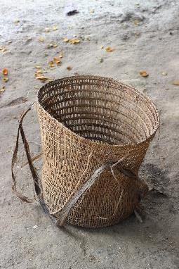 Es importante destacar que antes de este cambio, las mujeres ya tejían las wïwa. En su forma original, estas eran cestas de carga y almacenamiento de gran tamaño, muy robustas, carentes de cualquier tipo de decoración (ver la figura 9), y que acompañan a las mujeres en sus labores diarias en el conuco (campos de cultivo) (Wilbert 1972, 125). Notamos, así, que tanto estas como las otras cestas que tejen no se encuentran involucradas directamente con la producción de la alimentación diaria de la que ellas son encargadas.