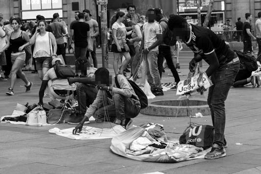 There are many undercover police in Madrid. If there is a tense relationship between uniformed police officers and irregular migrants, the presence of undercover police means the situation is even harder and more stressful, especially for street vendors. In the next subsection, I will describe how encounters with the undercover police and other actors are marked by the need to play the visible or invisible role depending on both the situation and the actors.