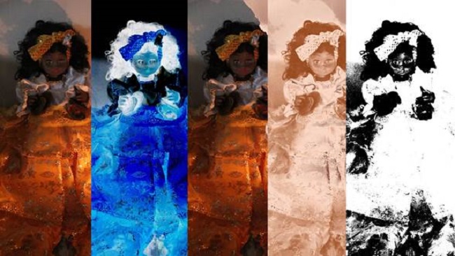 Por otra parte, en el espiritismo cruzao, cada espíritu resulta único, pese a que pudieran compartir características; en otras palabras, aunque hubiese muchas Ma Julianas, ninguna de ellas sería igual a la otra, las conexiones trascendentes serían diferentes; los colores con los que van vestidas, los trajes, los atributos, los modos como se les rinde culto, su modo como conectan dentro de la vida de las personas serían disímiles. Por esta vía, las identidades culturales de estos espíritus, si se acepta el hecho de que estas son, no serían fijas, sino que se encontrarían atravesadas por una suerte de “mismo cambiante”, es decir, por la relación entre mismidad y diferenciación étnica presentes en la diáspora (Gilroy 2002). De ningún modo, una entidad espiritual es calco de otra, siempre hay algo que escapa y se abre a la multiplicidad, y si lo hacen en la cotidianidad, lo hacen en la imagen fotográfica que pretende ser representación de esta; la imagen se presenta entonces como una copia vaciada, como ilusión (ver la figura 4).