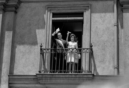 Salvador Allende y su mujer Hortensia Bussi -primera dama conocida cariñosamente por esos tiempos como Tencha- aparecían en el balcón del despacho de los presidentes, en la esquina de las calles santiaguinas Moneda y Morandé. Como parte de la tradición republicana, era ese lugar desde donde los presidentes dialogaban con los ciudadanos convocados en la Plaza de la Constitución. En la foto, Allende y Tencha recién volvían del acto de juramento en el Congreso Nacional para aparecer en el primer acto y gesto desde la presidencia y agradecer a los convocados espontáneamente que gritaban su nombre. En la foto, además, se percibía detrás de Tencha la figura de José Tohá, ministro del Interior, asesinado por los militares después del golpe. Expuesto y conmovido por la coincidencia de intereses secretos que proponía la exposición y las preguntas que habían quedado abiertas en la universidad, mi tránsito a través de la exposición iba lentamente consolidando la convicción de que una antropología que no diese cuenta de los espectros, de la presencia de la ausencia y de la multiplicidad de temporalidades en juego, sería insuficiente para ser responsable y buen testigo de la aparición furtiva de los (re)aparecidos.
