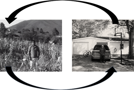 En abril de 2013, en la ciudad de Ixmiquilpan, durante la realización de un grupo focal con migrantes retornados desde Estados Unidos a comunidades del Valle del Mezquital, realicé un ejercicio de foto-elicitación3 gracias a un par de fotografías que Gerardo, un joven mezquitalense migrante de retorno, me había facilitado (figura 2). Antes de compartir las fotos con los participantes, profundas reflexiones temporales habían surgido frente al interrogante en torno a si ellos regresarían a Estados Unidos. Intrincadas alusiones al antes, al después, al ahora, al futuro, al cambio y a las expectativas respecto del porvenir de los hijos parecían reñir con la linealidad que suele otorgarse al proyecto migratorio.