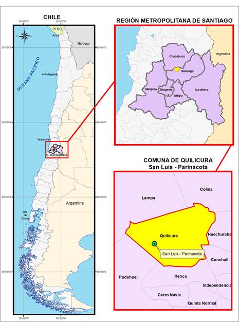 Respecto a su distribución residencial, podemos mencionar su concentración en la Región Metropolitana en comunas con elevados índices de vulnerabilidad o en barrios y poblaciones de menores ingresos (Atisba 2018), los cuales constituyen zonas de concentración segregada (Rodríguez y Gissi 2019). Destacan las comunas de Quilicura con 14,7 %, Estación Central con un 11,1 % y Santiago con un 6,4 % (DEM 2017). Así, por ejemplo, en el sector San Luis-Parinacota de la comuna de Quilicura (figura 1), un 70 % del total de población migrante es de origen haitiano. En efecto, se trata de una zona con altos niveles de violencia, narcotráfico y mal estado de las viviendas y los espacios públicos (Atisba 2018). Adicionalmente, el deterioro de las viviendas y las casonas, la precaria calidad de las ampliaciones, las dinámicas de abuso en el subarriendo, el arriendo compartido multifamiliar y el hacinamiento se transforman en expresiones materiales que consolidan la vulnerabilidad social del colectivo migrante haitiano en Chile (Chaná 2019; OIM 2017).