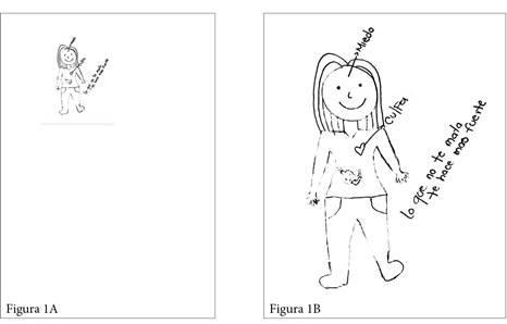 A continuación, quisiera mostrar una de esas narrativas personales en las que es posible ver varias dimensiones de las cadenas y las tramas transnacionales del cuidado. En la cartografía corporal hecha por Pilar, hija de una mujer migrante en Barcelona (figura 1), quien ha tenido una trayectoria migratoria muy amplia, con por lo menos dos momentos de migración transnacional, ella entreteje su existencia con estas tramas. El primer momento ocurre cuando sus hijas eran muy pequeñas, hace alrededor de quince años, y el segundo, hace aproximadamente cuatro años. A pesar de que pusimos a disposición muchos colores y posibilidades para hacer la cartografía, Pilar eligió hacerla solo con lápiz de grafito; ella se ve suspendida, como perdida en la hoja en blanco y la sonrisa que dibuja en su cara contrasta con la tristeza que emana durante toda la entrevista y con las palabras “culpa” y “miedo” que marcan su cartografía. Esta me deja la sensación de alguien que no quiere ocupar mucho espacio, otra paradoja espacial y corporal atada a la migración y al cuidado. Los discursos xenofóbicos como los misóginos tienen una cosa en común: un mandato de invisibilidad sobre mujeres, personas feminizadas y migrantes, a quienes se hace un juicio sumario por ocupar un espacio que “no les corresponde”.