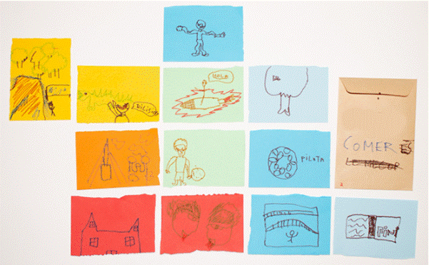 Nota: estos son los dispositivos visuales generados por Marcial en la propuesta artística de materializar los tránsitos. En ellos se puede ver cómo dibuja la experiencia migratoria: qué le gusta del sitio donde vivía (no tenía deberes, su mejor amigo caminaba solo), qué le gusta haber dejado atrás (los cocodrilos), qué le ha gustado del país al que ha llegado (la casa, el Tibidabo) y qué desearía poder cambiar del tránsito (poder celebrar el cumpleaños con la gente que ha dejado allí, un libro, bailar).